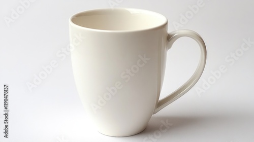 © SlashStd, Obraz premium Empty white ceramic mug with handle, isolated on white background.