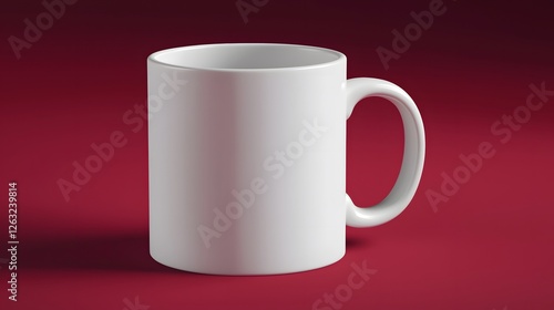 Obraz premium Empty White Coffee Mug on Red Background with Smooth Surface
