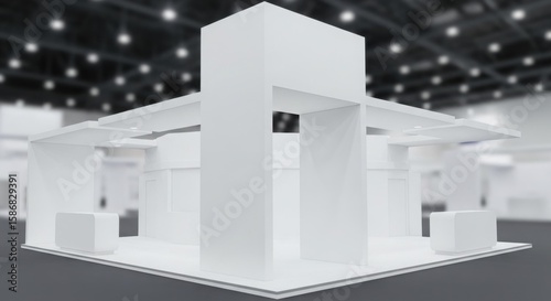 Fototapeta premium Empty white exhibition booth, modern design, in a large hall, showcasing potential.