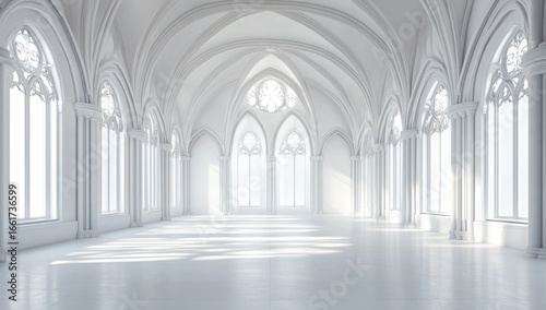 © Agus, Naklejka premium Empty white Gothic cathedral hall
