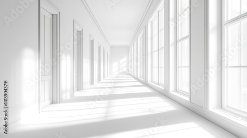 Obraz premium Empty white hallway with large windows