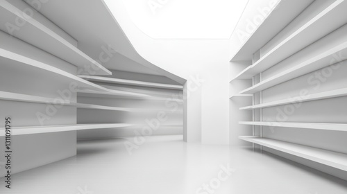 © Zeva, Obraz premium Empty white minimalist store interior shelves