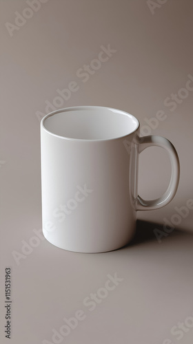 © Ansar45, Obraz premium Empty White Mug on Taupe Brown Background