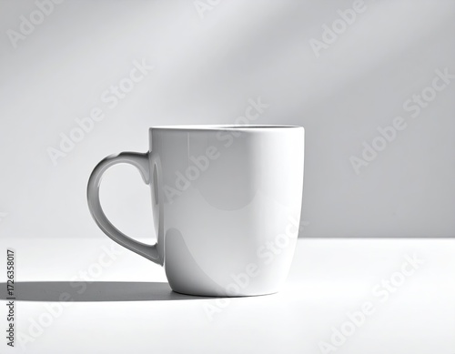 © kremlin, Obraz premium Empty white mug on white surface, soft shadows