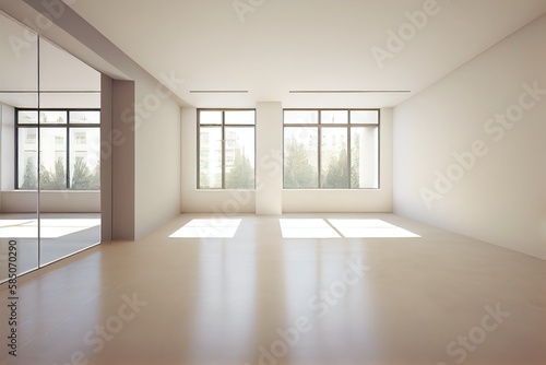 Obraz premium Empty White Room Background, Clean Blank Interior Mockup, Empty Space, Abstract Generative AI Illustration