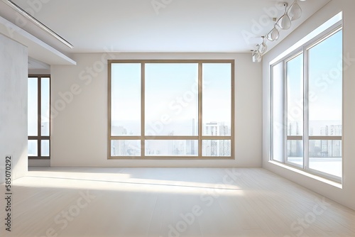 Obraz premium Empty White Room Background, Clean Blank Interior Mockup, Empty Space, Abstract Generative AI Illustration