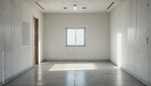 Obraz premium Empty White Room With Single Window Sunlight Interior