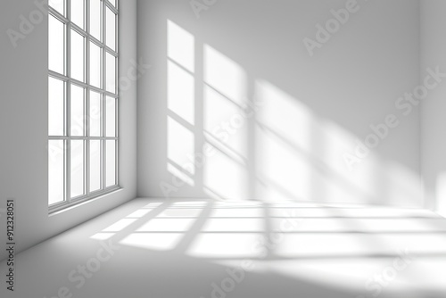 © ffunn, Obraz premium Empty white room with window and sunlight