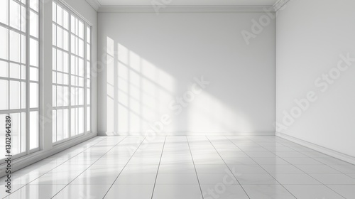 © Royal, Fototapeta premium Empty White Tile Floor on White Background
