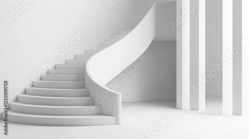 © Qaqas, Obraz premium empty white wall in concrete basement with staircase podium 3d render illustration