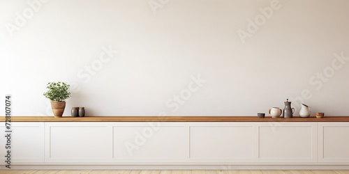 © Lasvu, Fototapeta premium Empty white wall in the kitchen.