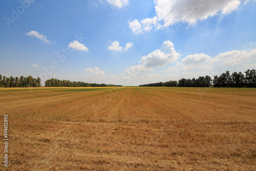 © Vladimir Liverts, Obraz premium Empty wide field under white clouds