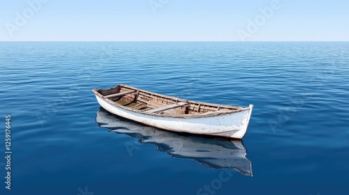 © danadesa, Naklejka premium Empty wooden boat on calm ocean water