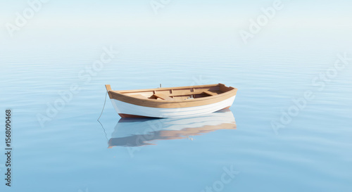 © ART MAX, Fototapeta premium Empty wooden boat with weights in the middle of the lake 03