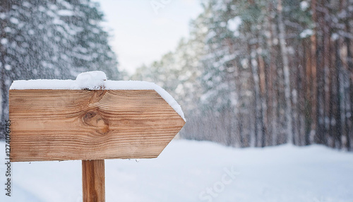 Naklejka premium Empty wooden signpost in snow. Travel destination, tourism. Blank wood...