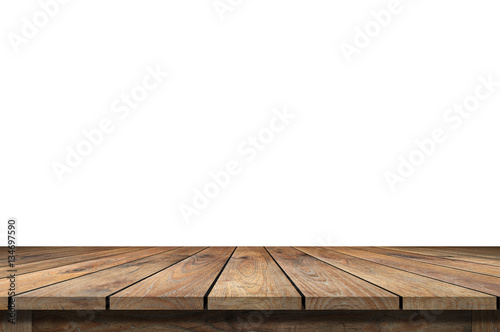 © manbetta, Obraz premium Empty Wooden table isolated on white background.