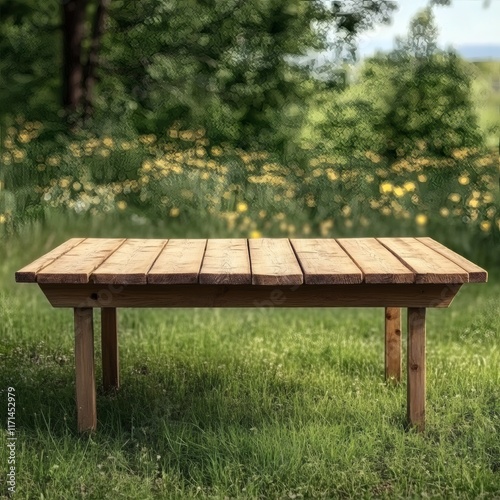 © Ahmad, Fototapeta premium empty wooden table on Spring summer natural background