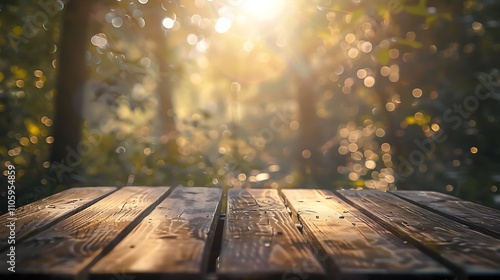 © MdAnontoIslam, Fototapeta premium Empty wooden table with christmas theme in background, Warm Glow: A Cozy Evening at a Wooden Table