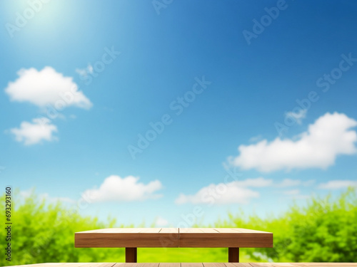 © Aicreativezone, Obraz premium Empty wooden table with natural blur background