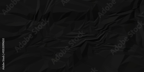 Fototapeta premium Empty wrinkle black color crumple paper texture pattern abstract background. Crumpled black paper abstract shape background with space paper for texture.
