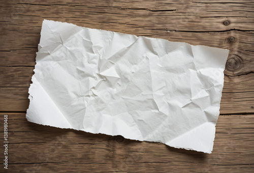 © MR.DEEN, Obraz premium Empty wrinkled white paper texture on weathered oak wood grain table
