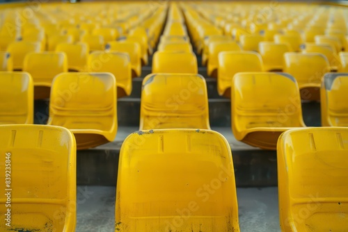 © Habib, Fototapeta premium Empty Yellow Stadium Seats - AI Generated