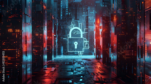 © Ayan, Obraz premium Emulate the intricacy of IT Security in a digital art form, focusing on a distinctive digital padlock as the central object