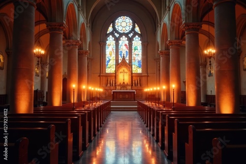 © yuwaree, Fototapeta premium Encended veladoras en una iglesia con altares, church, fe, devotion