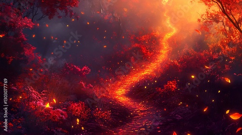 Naklejka premium Enchanted Autumn Path: A Digital Painting of a Mystical Forest Trail