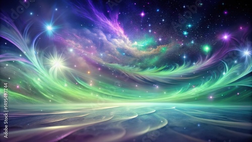 Obraz premium Enchanted Celestial Landscape A Dreamlike Aurora Borealis Over a Serene,...
