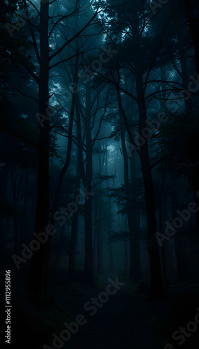 © Sergey, Naklejka premium Enchanted dark forest isolated with white highlights, png