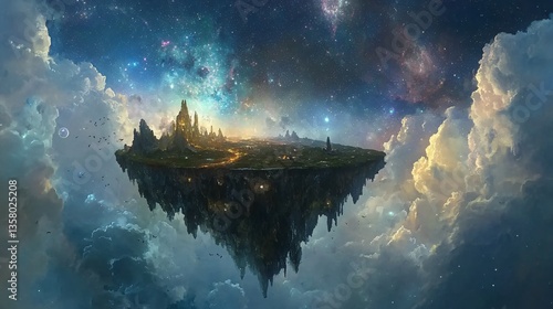 Fototapeta premium Enchanted Floating Island Amidst a Celestial Dreamscape at Dusk