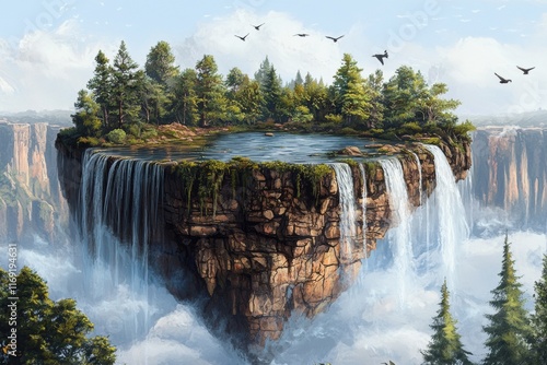 Fototapeta premium Enchanted Floating Island Waterfall Paradise