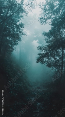 © Infinity, Fototapeta premium Enchanted Forest: A Misty Path Through the Woods