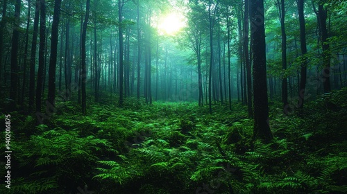 © Siti, Obraz premium Enchanted Forest: A Mystical Path Through Lush Green Woods