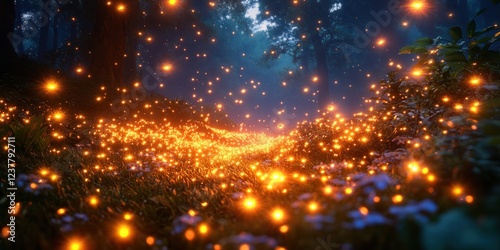 Naklejka premium Enchanted Forest: A Night of Fireflies