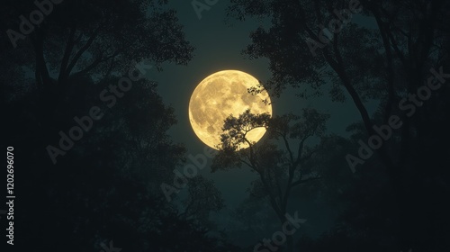 Naklejka premium Enchanted Forest: A Night Under the Full Moon's Glow