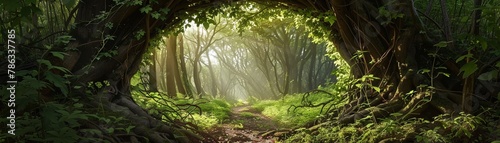 Obraz premium Enchanted forest archway dappled sunlight