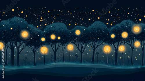 Obraz premium Enchanted Forest at Night with Glowing Lights.