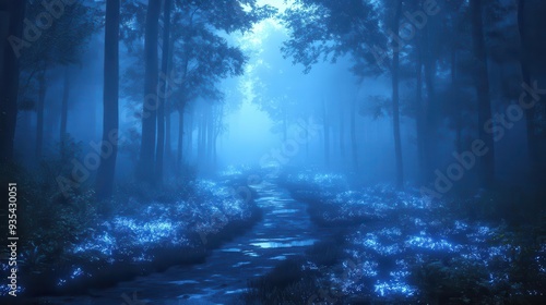 © julija, Fototapeta premium enchanted forest at twilight bioluminescent flora mystical creatures ethereal mist