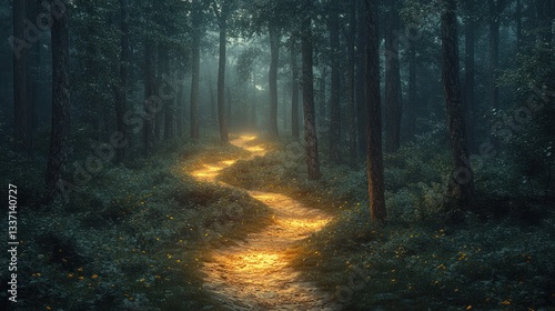 © orendesain99, Fototapeta premium Enchanted Forest Path: A Glowing Trail Through Mystical Woods