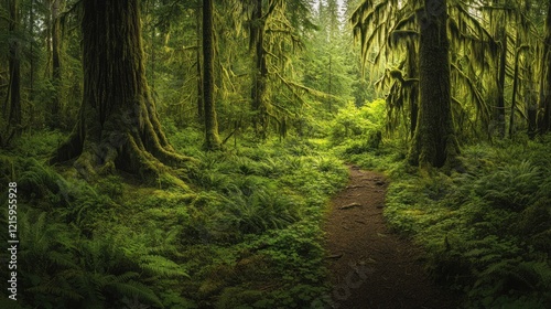 © Ari, Obraz premium Enchanted Forest Path: A Journey Through Lush Greenery