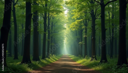 © SwathiFX, Fototapeta premium Enchanted Forest Path A Journey Through Natures Heart