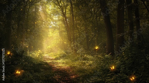 © slamet, Obraz premium Enchanted Forest Path: A Magical Journey Through Nature's Embrace