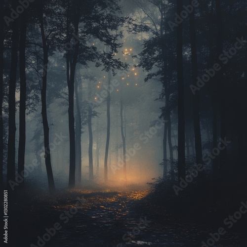 © Mulyadi Lim, Fototapeta premium Enchanted Forest Path: A Mystical Night in the Woods