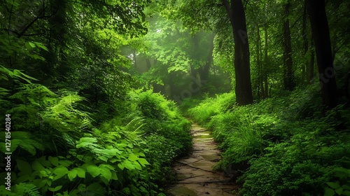 Fototapeta premium Enchanted Forest Path: A Serene Journey Through Lush Greenery