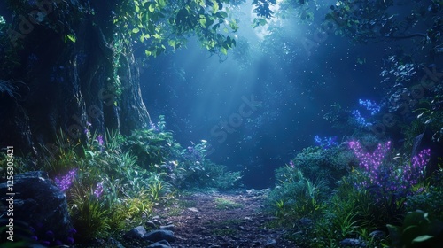 © abrardsgn, Fototapeta premium Enchanted Forest Path at Night