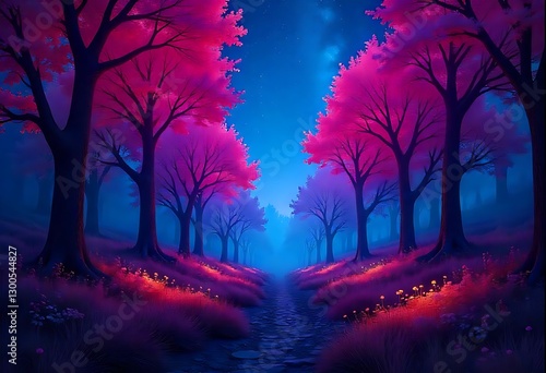 © Mubashir, Obraz premium Enchanted Forest Path Under a Starry Sky