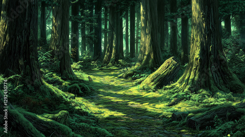 © Alex, Obraz premium Enchanted Forest Path with Sunlight