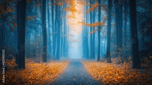 © Matcha_09, Fototapeta premium Enchanted Forest Pathway in Autumn Light